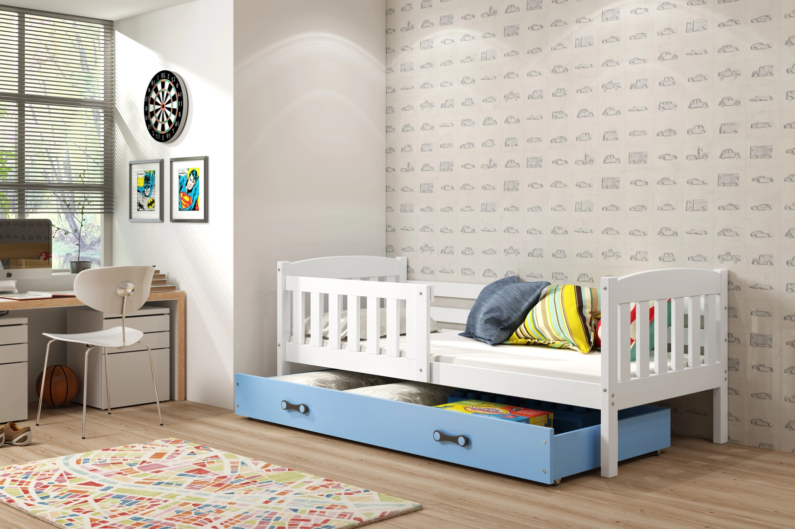 Decydując się na łóżko parterowe Kubuś otrzymujesz wszystko, co najważniejsze: zwiększasz bezpieczeństwo Twojego Dziecka, podwyższasz funkcjonalność pokoju, a sobie zapewniasz spokojny sen. O pozycji barierki decydujesz podczas montażu. Może ona być po lewej lub po prawej stronie.