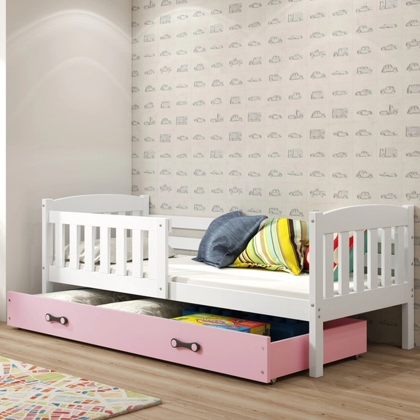 Jako łóżko młodzieżowe z szufladami może być wykorzystywane do przechowywania zarówno pościeli, jak i ubrań, zabawek oraz innych rzeczy. To z kolei ułatwi utrzymanie porządku w pokoju. Sama szuflada nie zajmuje dodatkowej przestrzeni. Szuflada w kolorze różowym w dolnej części zachwyci każdą dziewczynkę. Może służyć jako miejsce na pościel albo dodatkowy schowek na zabawki. Praktyczne rozwiązanie, które ucieszy przede wszystkim Ciebie, jeśli kochasz porządek. Designerskie uchwyty subtelnie się wyróżniają.