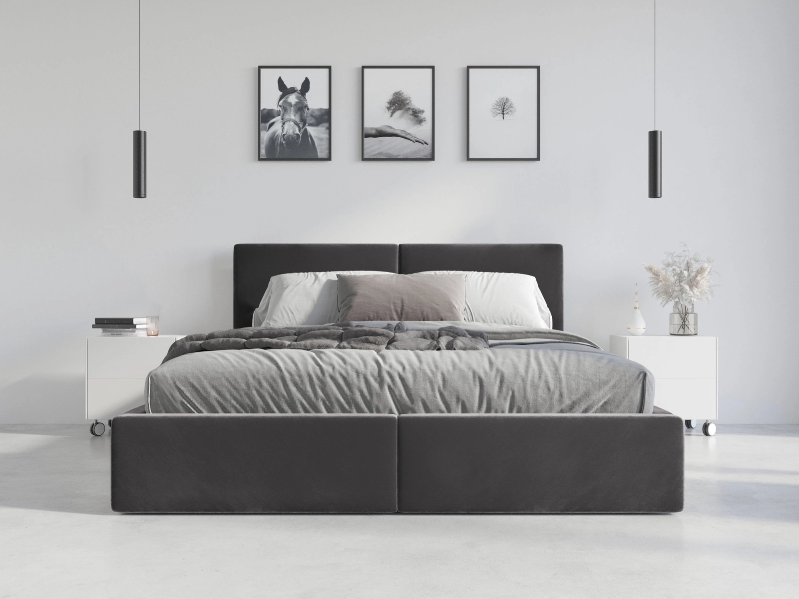 Konstrukcja łóżka wykonana jest z wysokiej jakości płyty laminowanej, zapewniającej wytrzymałość i łatwość utrzymania czystości. Dodatkowo jego grafitowa tapicerka, miękka i przyjemna w dotyku, dodaje wnętrzu elegancji. Stelaż łóżka gwarantuje odpowiednie wsparcie i trwałość.