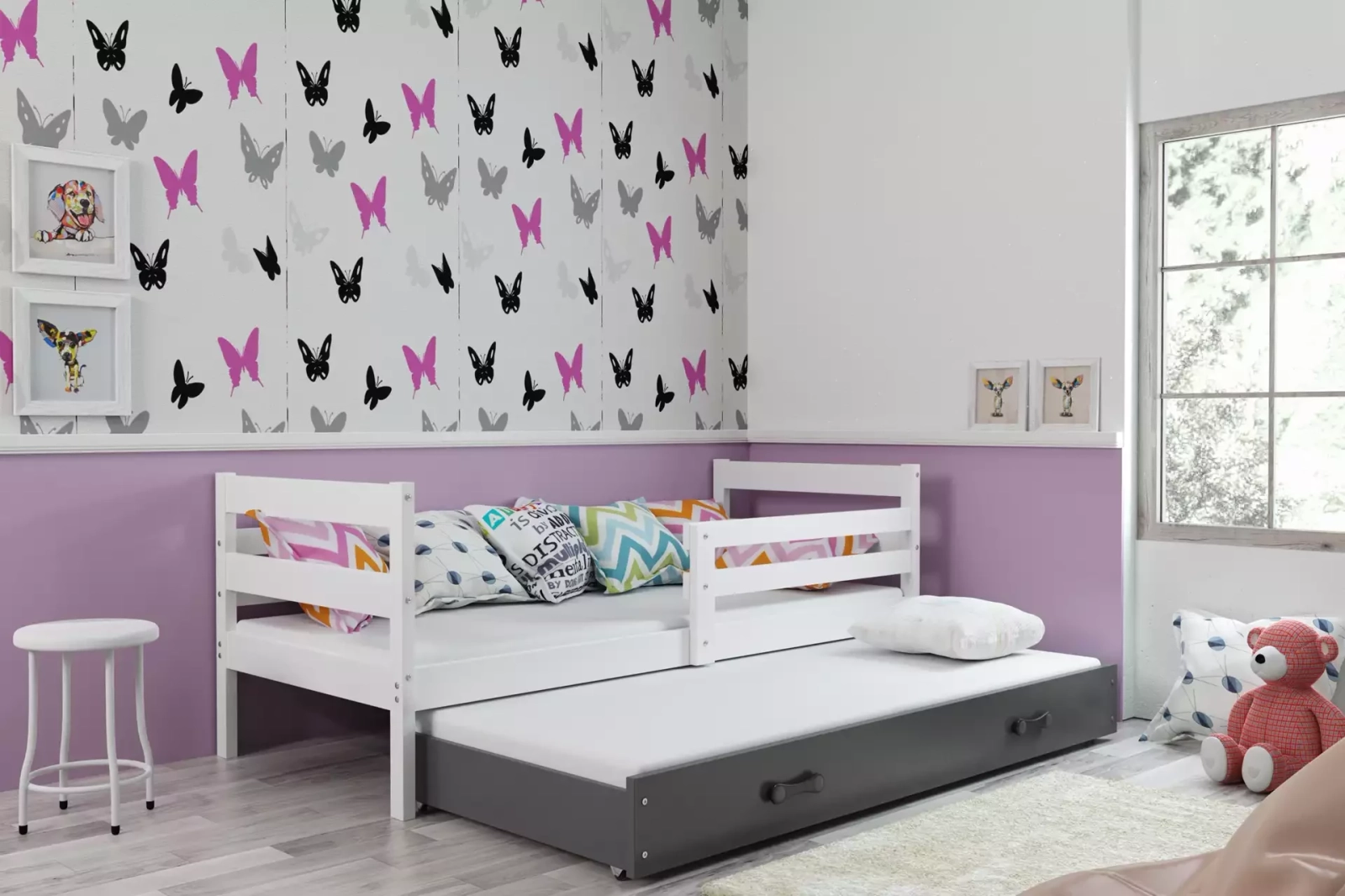 Łóżko Eryk wyróżnia się klasyczną formą i uniwersalnym, białym kolorem, który harmonijnie wpisuje się w niemal każdy styl aranżacji wnętrza. Doskonale sprawdzi się zarówno w pokoju dziewczynki, chłopca, jak i we wspólnej przestrzeni rodzeństwa. Subtelny design sprawia, że mebel dobrze komponuje się zarówno z intensywnymi barwami, jak i z bardziej stonowaną kolorystyką wnętrza.