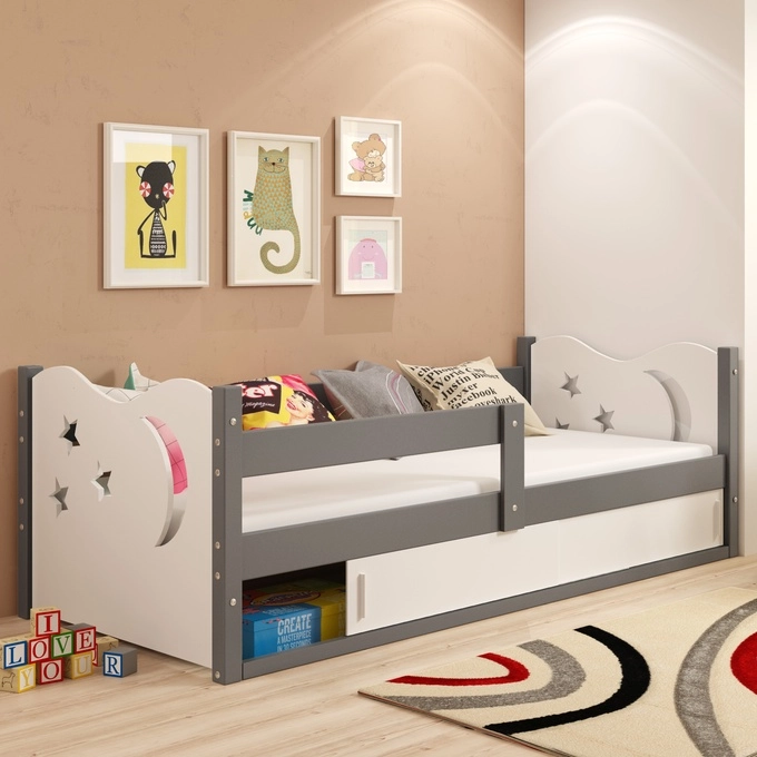 Łóżko dziecięce pojedyncze MIKOŁAJ 80X160 z materacem i schowkiem, grafitowe