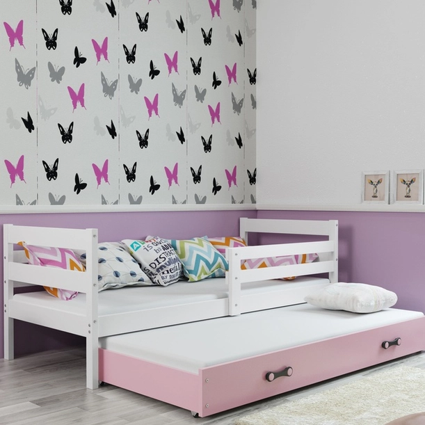 Łóżko młodzieżowe ERYK 90x190 z szufladą, białe/różowe