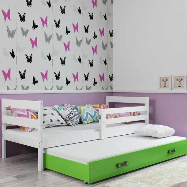 Łóżko młodzieżowe ERYK 90x190 z szufladą, białe/zielone