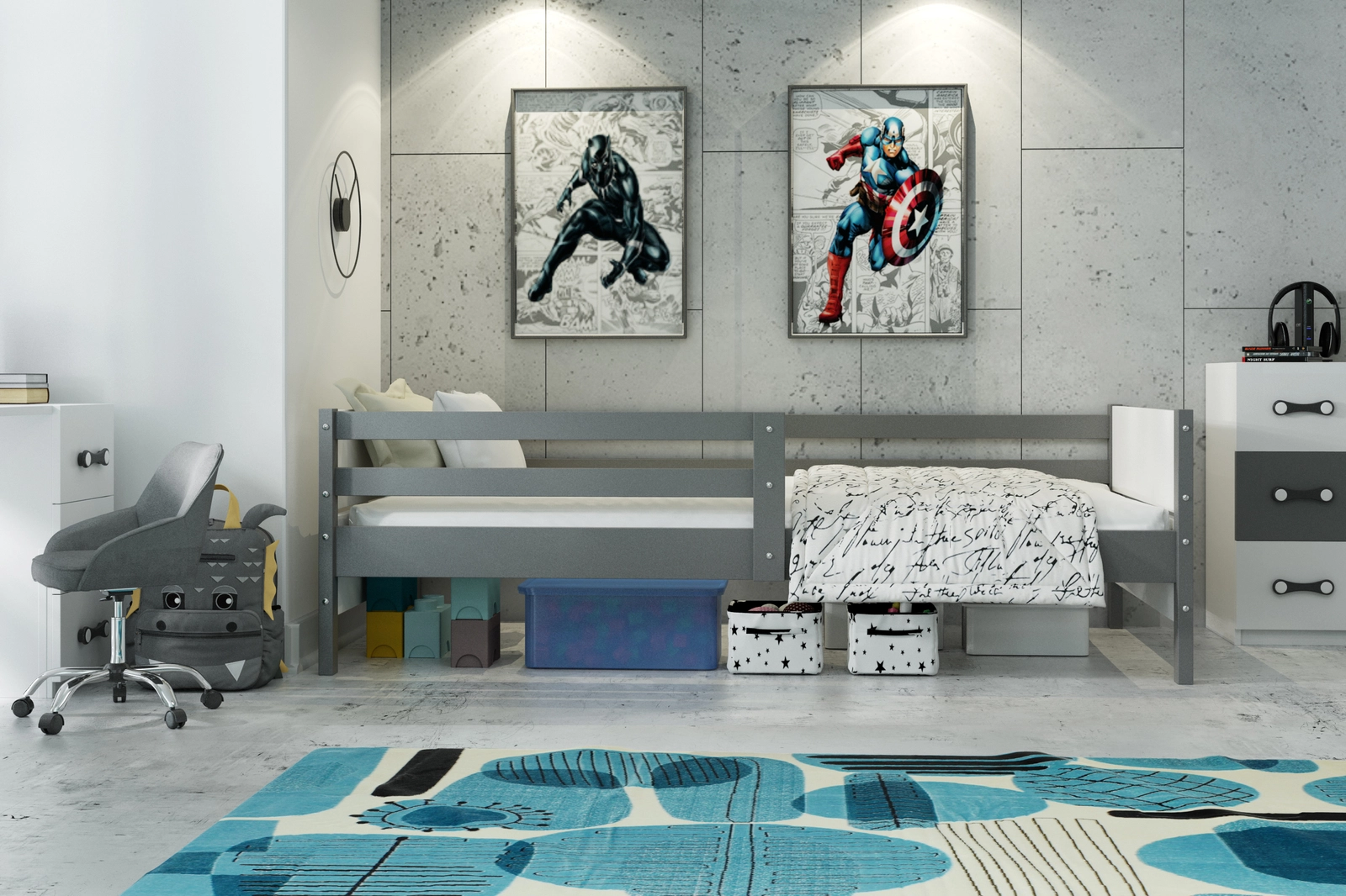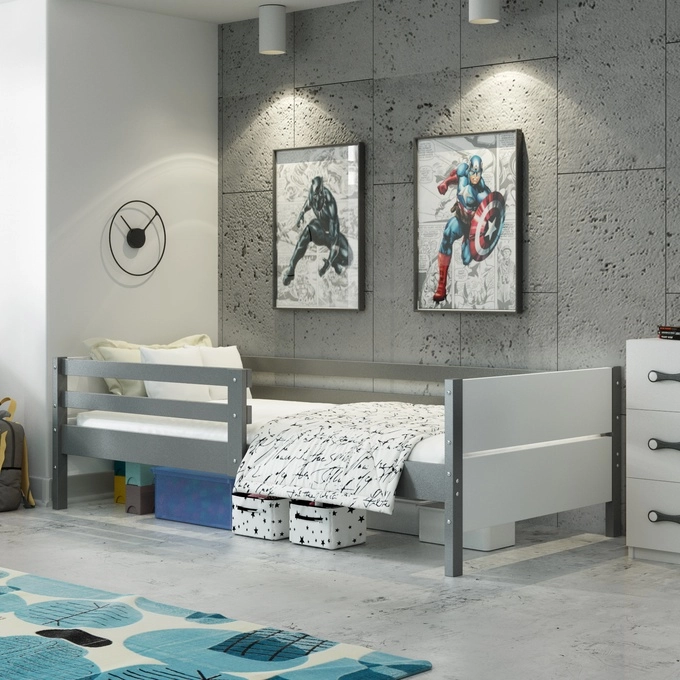 Łóżko młodzieżowe model Mario to bardzo funkcjonalne rozwiązanie do pokoju zarówno chłopca, jak i dziewczynki. Całość wyróżnia się minimalistyczną konstrukcją, dzięki czemu znakomicie komponuje się z różnymi elementami wystroju. Uniwersalna kolorystyka ułatwia dopasowanie do wielu aranżacji. Łóżko malowane na kolor grafitowy, wzbogacone o białe dodatki, nadaje wnętrzu lekkości i nowoczesnego charakteru. Farba pokrywająca konstrukcję jest antyalergiczna i posiada wszystkie niezbędne atesty.