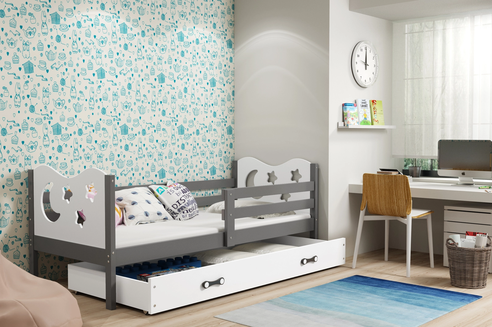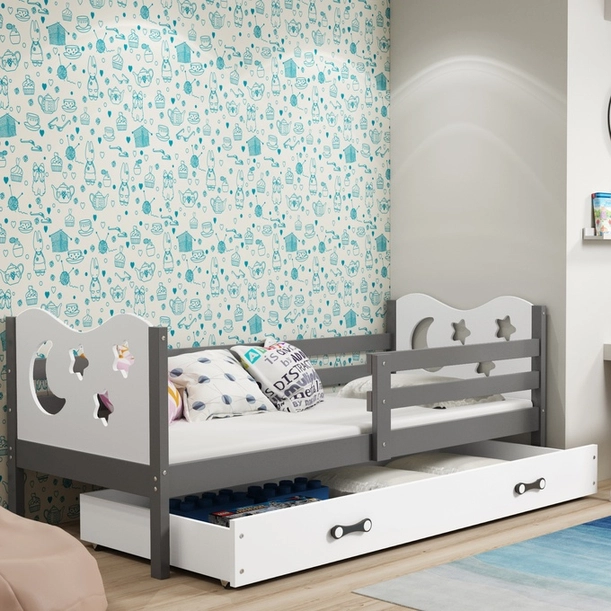 Łóżko młodzieżowe pojedyncze MIKO 80X190 z materacem i szufladą, grafitowe/białe