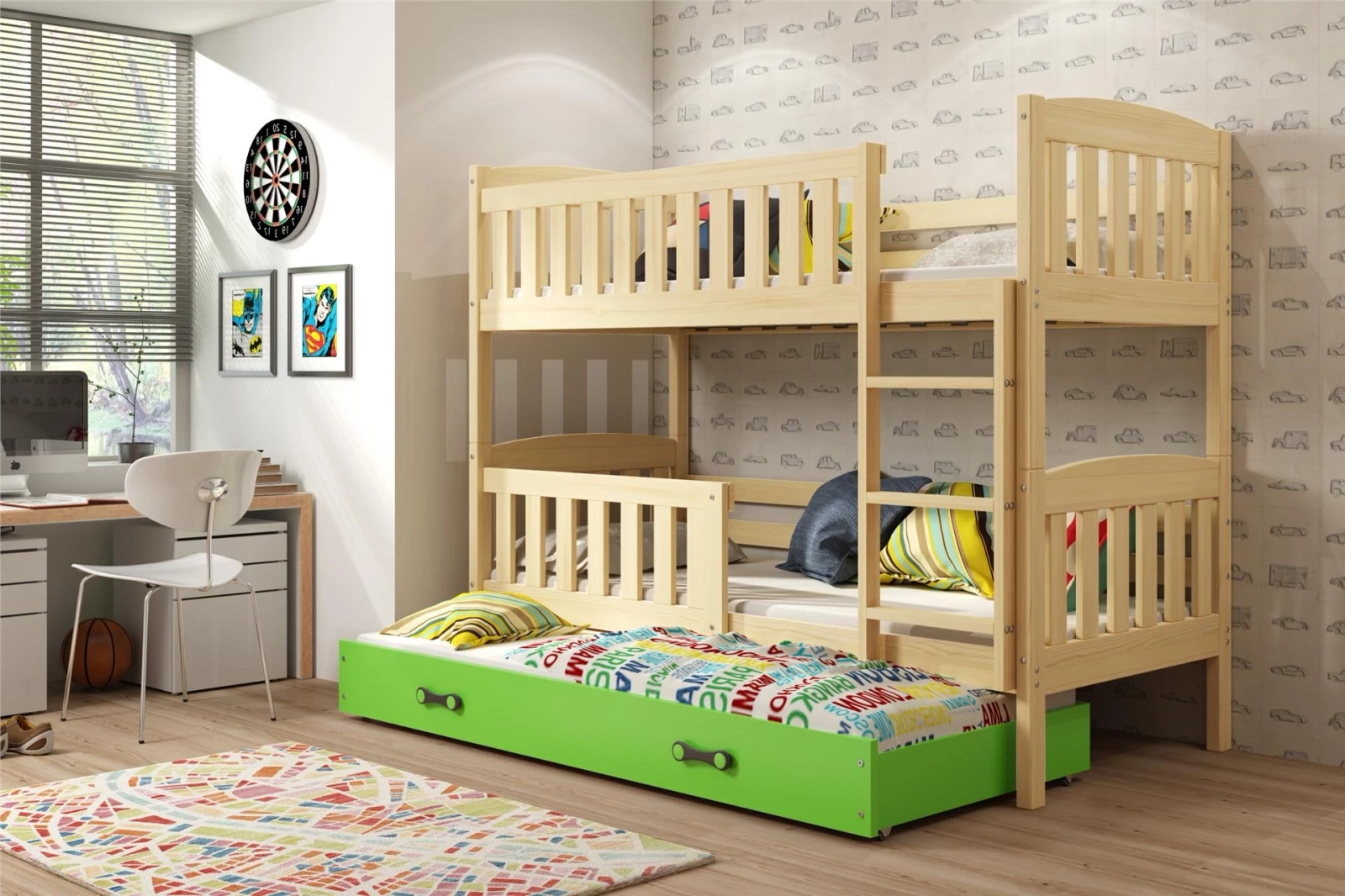 Łóżko piętrowe Kubuś 3-osobowe zostało stworzone z myślą o dużych rodzinach. Umożliwia urządzenie pokoju, w którym może spać aż troje dzieci.