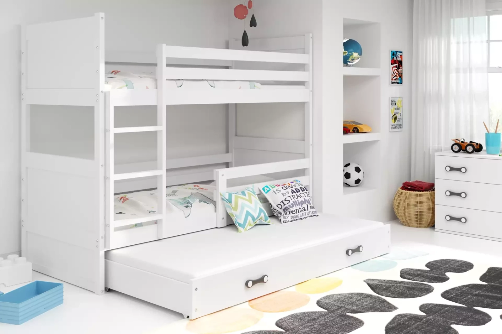 Idealne do małych przestrzeni, to solidne łóżko zostało zaprojektowane tak, aby zapewnić Twoim dzieciom bezpieczeństwo i komfort podczas snu.
