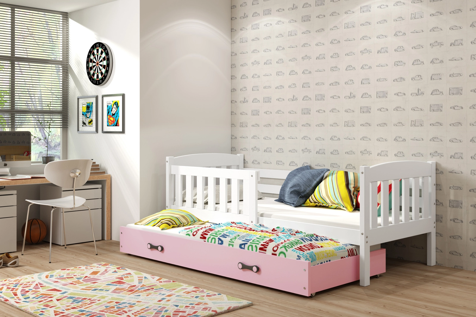 Stabilne i solidne dzięki konstrukcji z litego drewna sosnowego, wytrzyma nie tylko sen, ale także niemal każdą zabawę kilkulatków. Dodatkowa barierka zabezpiecza dziecko na górnym poziomie, dzięki czemu ta część idealnie nadaje się dla młodszego użytkownika. Starsze dziecko zyskuje wówczas przestronne i niezwykle wygodne miejsce do spania w wysuwanej szufladzie. Oba miejsca są równie komfortowe i bezpieczne. Wyposażono je w elastyczne stelaże z listew drewnianych, które zwiększają wygodę snu i wspomagają prawidłową pozycję ciała, dzięki czemu konstrukcja chroni kręgosłup. To inwestycja w zdrowie Twoich dzieci – teraz i w przyszłości.