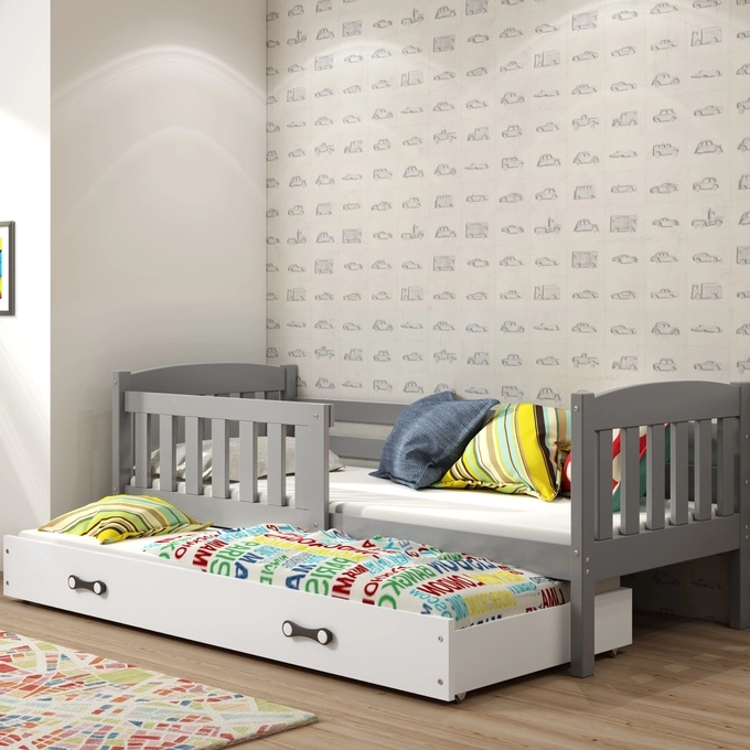 Łóżko młodzieżowe wysuwane KUBUŚ 90X190 z materacem i szufladą, grafitowe/białe Specyfikacja techniczna
