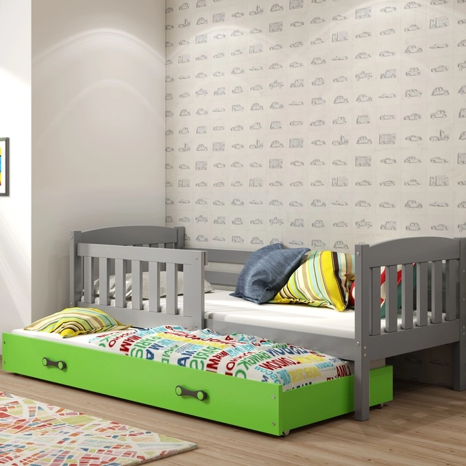 Łóżko młodzieżowe wysuwane KUBUŚ 90X190 z materacem i szufladą, grafitowe/zielone Specyfikacja techniczna