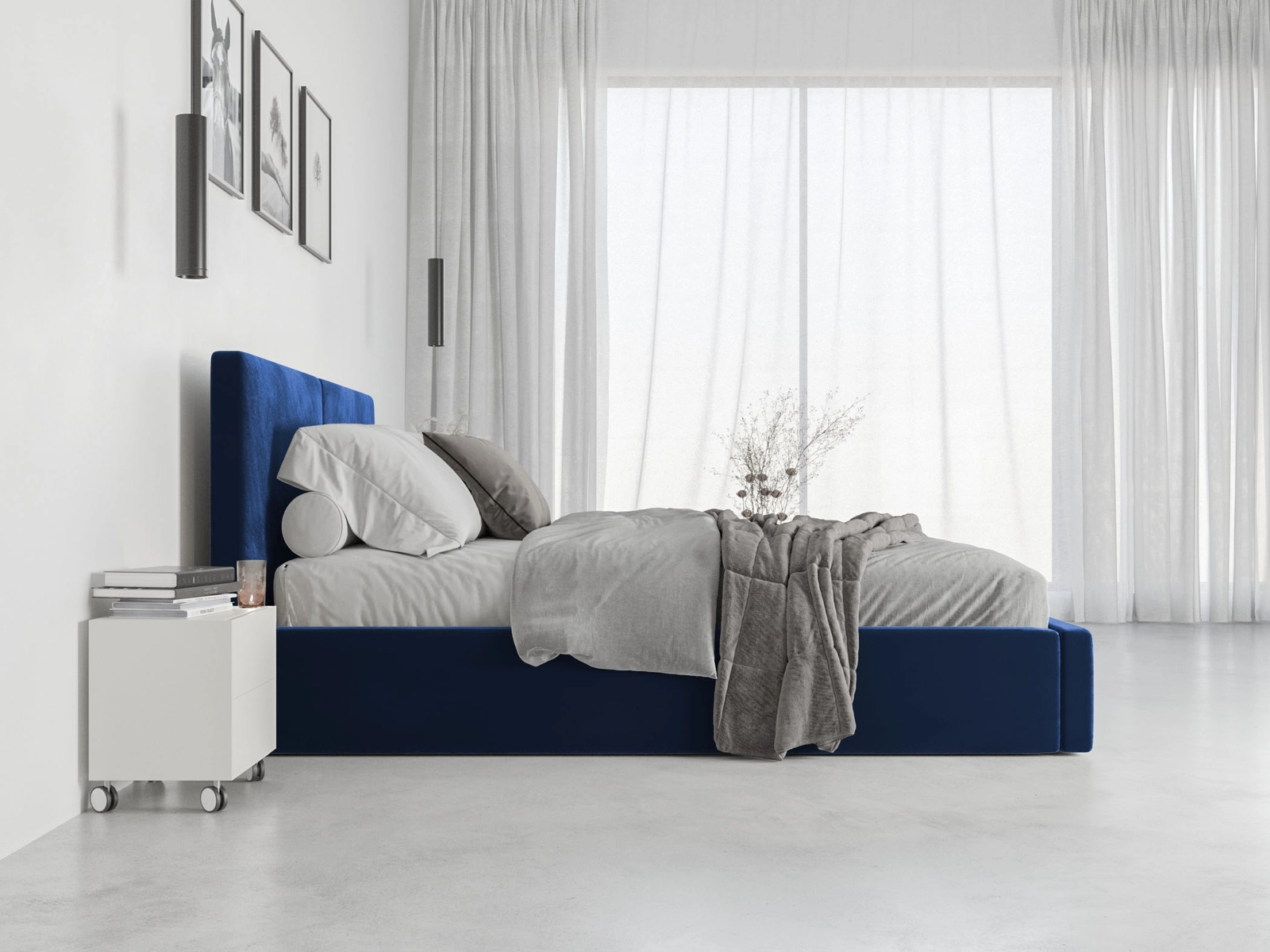 Łóżko sypialniane tapicerowane HILTON 140X200 z materacem i pojemnikiem, niebieskie