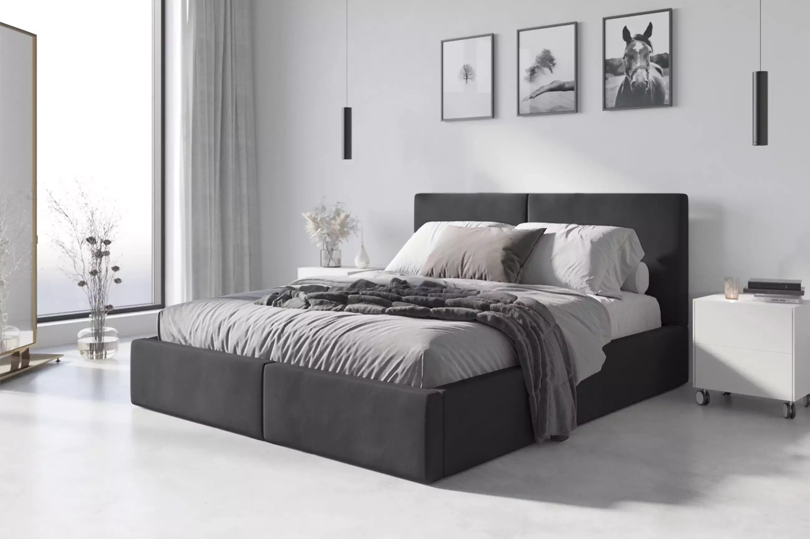 Łóżko sypialniane tapicerowane HILTON 160X200 z pojemnikiem, grafitowe