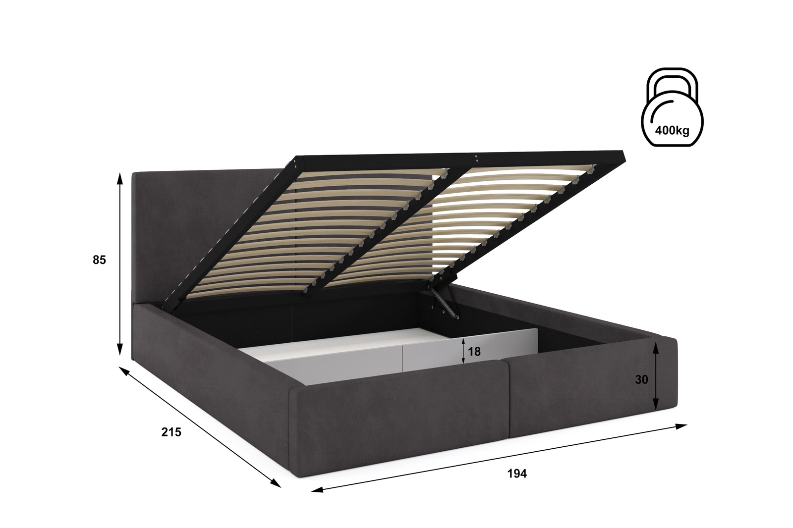 Łóżko sypialniane tapicerowane HILTON 180X200 z pojemnikiem, grafitowe