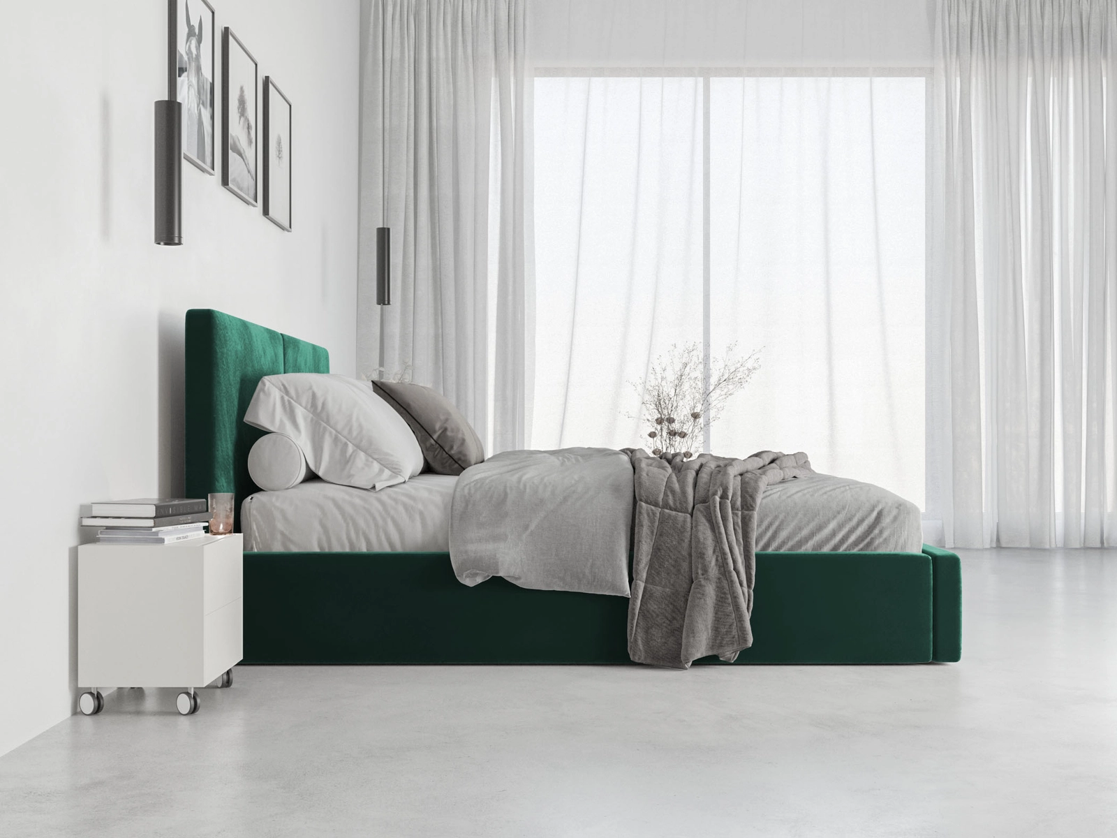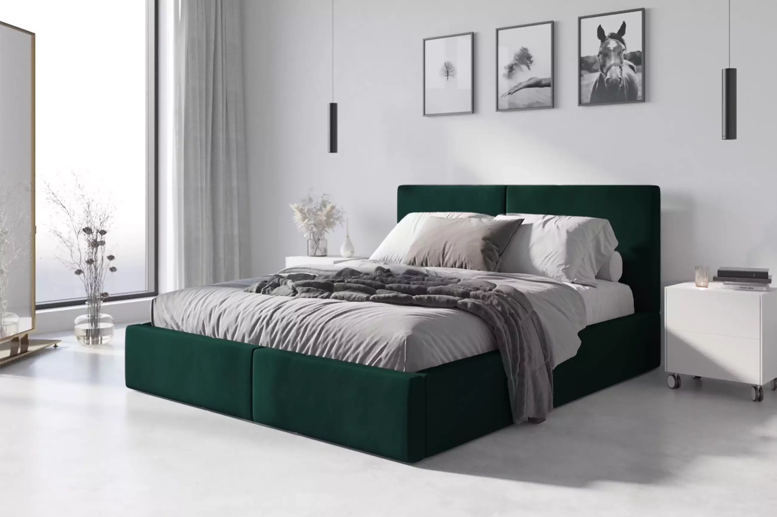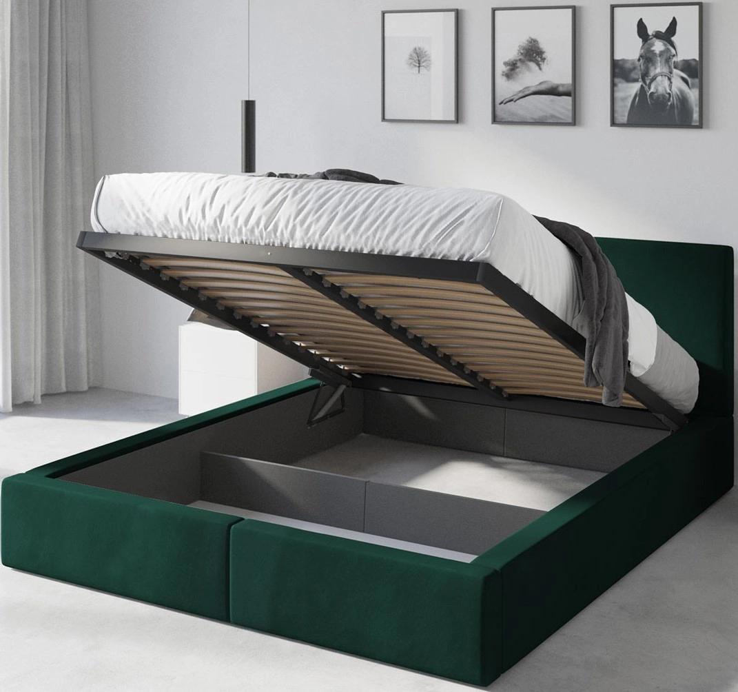 Łóżko sypialniane tapicerowane HILTON 180X200 z pojemnikiem, zielone
