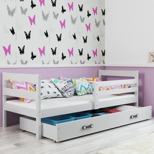 Pojedyncze łóżko młodzieżowe ERYK 90x190 z materacem i szufladą, białe