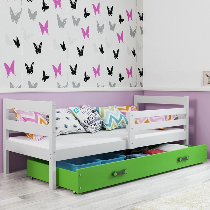 Pojedyncze łóżko młodzieżowe ERYK 90x190 z szufladą, biały/zielony