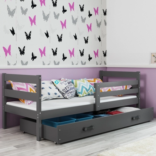 Pojedyncze łóżko młodzieżowe ERYK 90x190 z szufladą, grafitowe