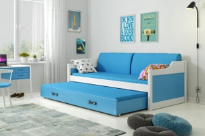 Łóżko młodzieżowe wysuwane DAWID 90X200 z materacem i szufladą, białe/niebieskie