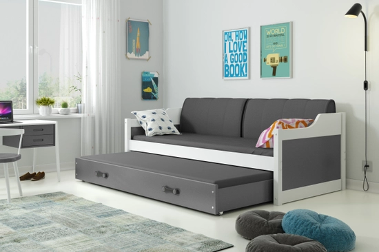 Łóżko młodzieżowe wysuwane DAWID 90X200 z materacem i szufladą, białe/grafitowe