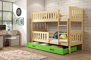 Łóżko młodzieżowe piętrowe KUBUŚ 80X190 z szufladą, sosna/zielone