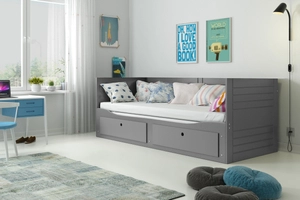 Łóżko młodzieżowe dwuosobowe rozkładane HERMES 80X200 z materacem i szufladą, grafitowe