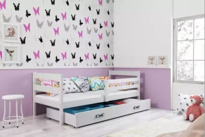 Pojedyncze łóżko młodzieżowe ERYK 90x190 z materacem i szufladą, białe