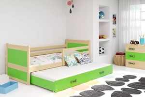 Łóżko młodzieżowe wysuwane RICO 90X200 z szufladą, sosna/zielone