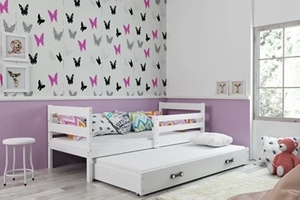 Łóżko młodzieżowe wysuwane KUBUŚ 80X190 z szufladą, sosna/białe