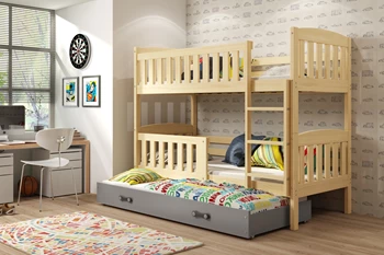 Łóżko młodzieżowe trzyosobowe KUBUŚ 90X200 z materacem i szufladą, sosna/grafitowe