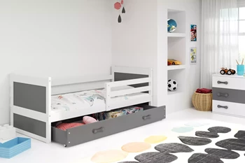 Łóżko młodzieżowe pojedyncze RICO 90X200 z szufladą, białe/grafitowe