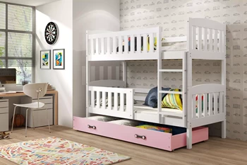 Łóżko młodzieżowe piętrowe KUBUŚ 80X190 z szufladą, sosna/różowe