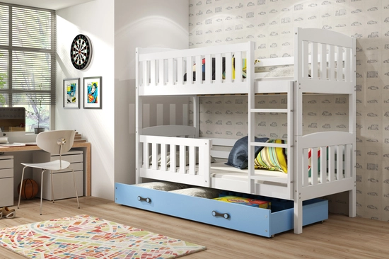 Łóżko młodzieżowe piętrowe KUBUŚ 80X190 z szufladą, sosna/niebieskie