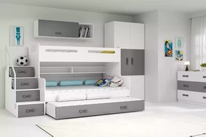 Łóżko młodzieżowe trzyosobowe MAX 1 80X200 z biurkiem, grafitowe