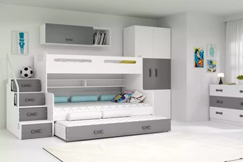 Łóżko młodzieżowe trzyosobowe MAX 3 120X200 z materacem i szufladą, białe