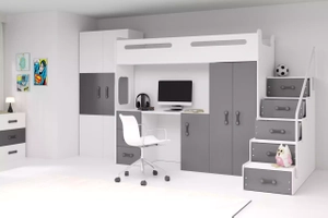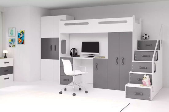 Łóżko młodzieżowe pojedyncze MAX 4 80X200 z biurkiem, grafitowe