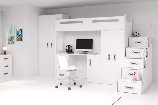 Łóżko młodzieżowe pojedyncze MAX 4 80X200 z biurkiem, białe