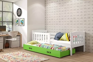 Łóżko młodzieżowe wysuwane KUBUŚ 90X200 z szufladą, białe/zielone