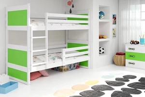 Łóżko młodzieżowe piętrowe RICO 90X200 z materacem, białe/zielone